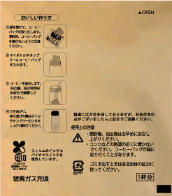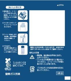(1)コーヒーバッグを取り出します。 開封時、中のコーヒーバッグを 破らないようご注意ください。 |